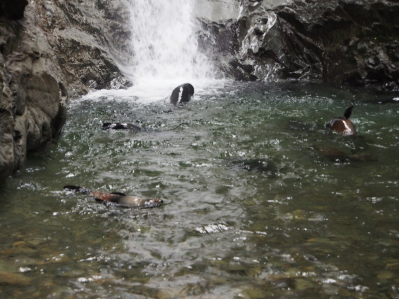 Another 10 minute up the valley we pass resting seals, and then come to the waterfall where there must be dozens of pups frolicking. What a treat – this is so worth stopping for.