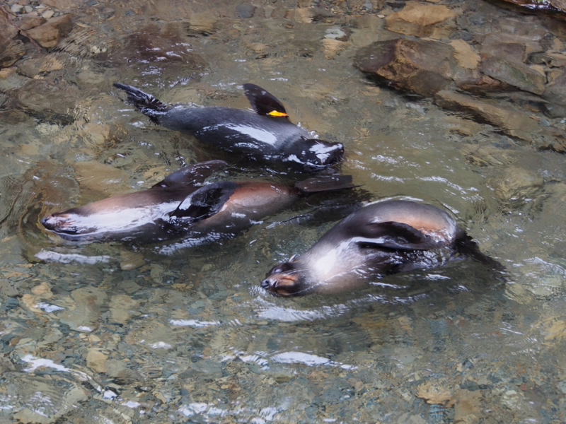 Just under the railway bridge there is a pool with three seals cavorting for a family. When little people go they seem bored with us but perk up when another family comes.
