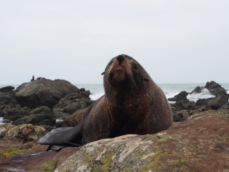 It is winter, pretty cold, but that is baby seal season on this rocky coast. I had forgotten – that while Kaikoura has its world famous Whale Watch trip, it is also a magic place for seals. Once hunted to extinction, they are making a comeback, and what a sight they are.