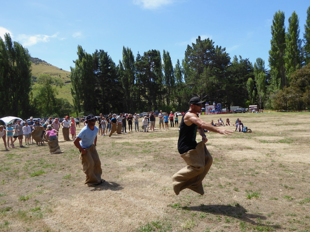 There is face painting, sausage sizzles, pony rides, rock tossing (I kid you not!) but the feature of the day is the races – running, egg and spoon, sack races, three legged races for young and old. All proceeds to the new Akaroa Health Hub