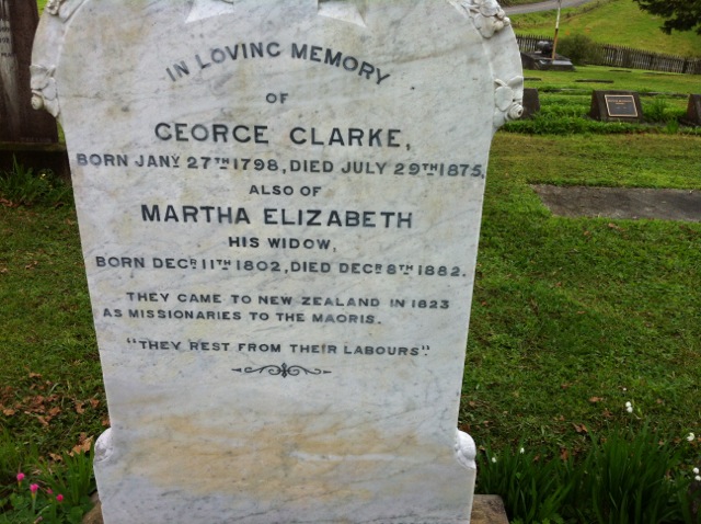 Two huge oak trees guard the entrance to the Church, but inside it is a native Puriri that catches my eye. We wander around the graveyard seeking stories, and find a row of Clarks and Kings, clearly early missionaries. There are Maori buried here too, and one of the finest looking graves has been recently restored and belongs to Paea Kahuru.