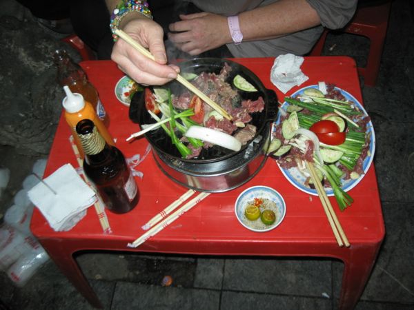 For a great experience and atmosphere I recommend Highway 4, Hanoi, where we ate a hot pot/steam boat. All the food is served raw and you cook it in a steaming pot in front of you. The restaurant is well known for its flavoured rice wines and all around the walls are marinated bees, herbs, bugs and seafood.